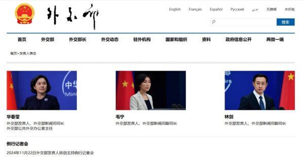 中国外交部には3人スポークスマンがおりまして、そのうちのひとり、林剣(Lin Jian)氏が記者発表を行いました。