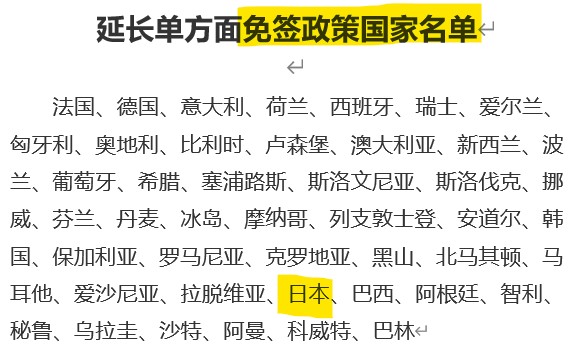中国語で表現している内容を確認する限り、「日本」とは一言も触れていません。日本がビザ免除措置延長の対象かどうか分からず、これだけをニュースの根拠にするには薄すぎます。