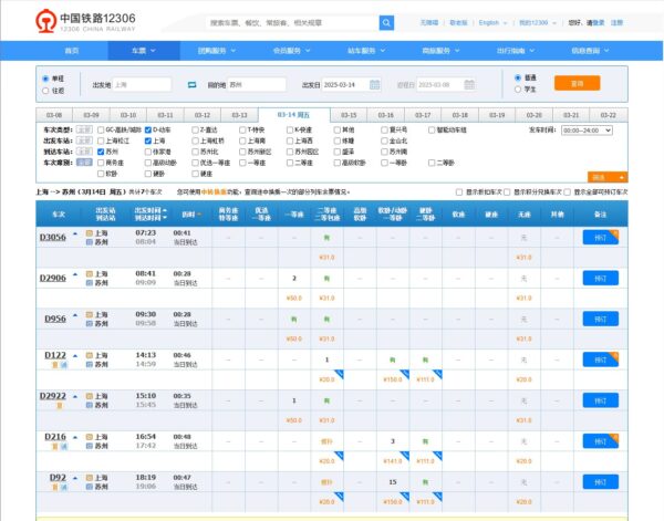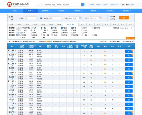 運賃や所要時間は、中国鉄道12306で検索して利便性について確認しました。