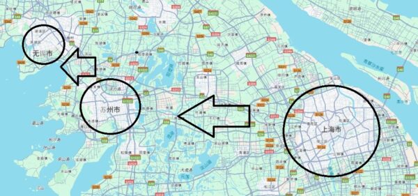 蘇州は江蘇省最東部の町で、上海市と隣接しています。厳密に言えば、蘇州市の昆山市と上海市が隣り合わせです。
