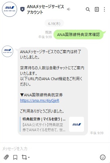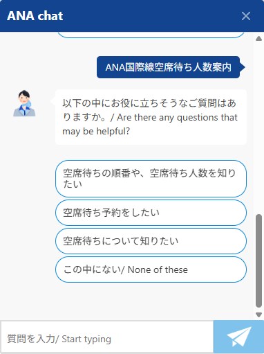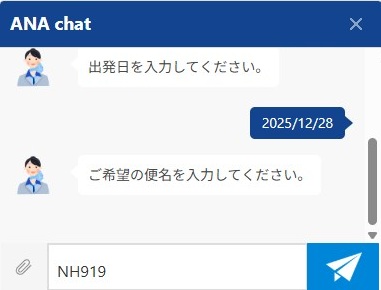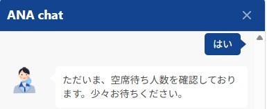 現在は ”ANA chat” が自動チャットの空席確認機能を引き継いでいます。