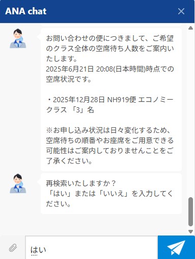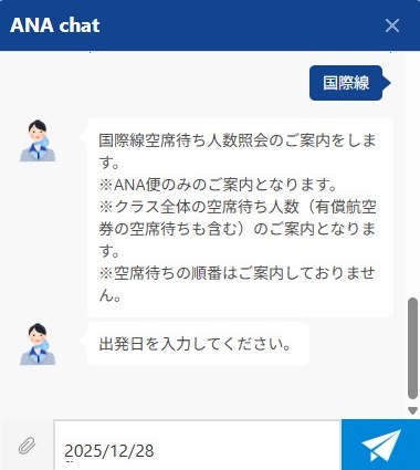 - 2025-09-23計画かんたん!”ANA chat” で国際線の空席待ち人数を確認する方法