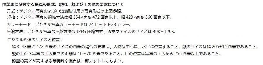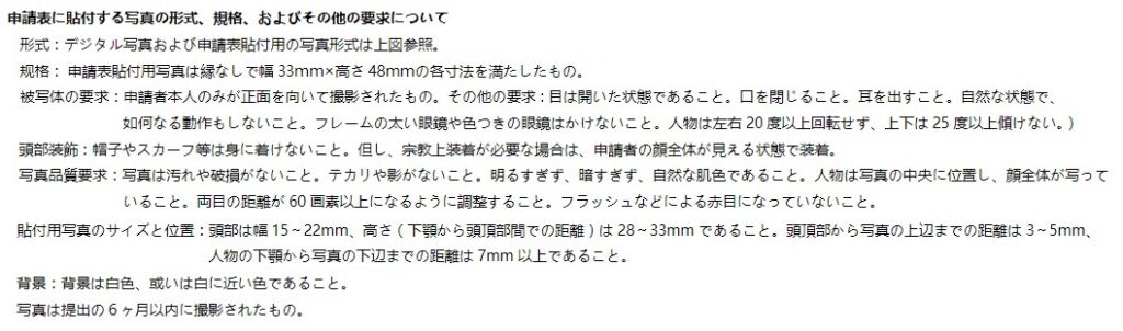 また、オンライン申請時にWEBへアップロードする写真の規格と、ビザ申請書に貼付するサイズなど写真の規格はそれぞれ別々に定められています。