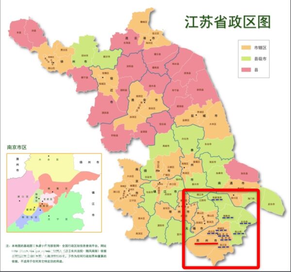 ”区”は”蘇州市”の中心部又は周縁部にある行政区が多く、更に離れた位置にあるところが”市”や”県”となるケースが一般的です。