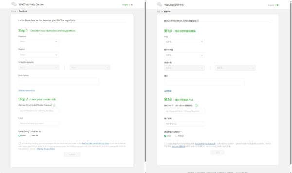 WehatPayはアプリ自体は日本語対応しておりますが、問い合わせは日本語対応している訳ではありません。WEBベースでは問合せ方法は次の2種類あります。