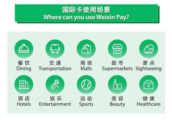 運営企業によれば、WechatPayの決済に使用することができる次の10の場面を想定しています。