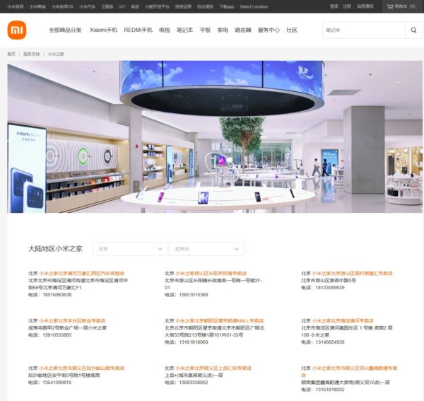 中国では「小米之家」(Xiaomi zhi jia)という名称で全国各地に1,000店舗以上を展開されていて、主だった大型ショッピングモールに必ずと言っていいほど入っているくらいの知名度です。